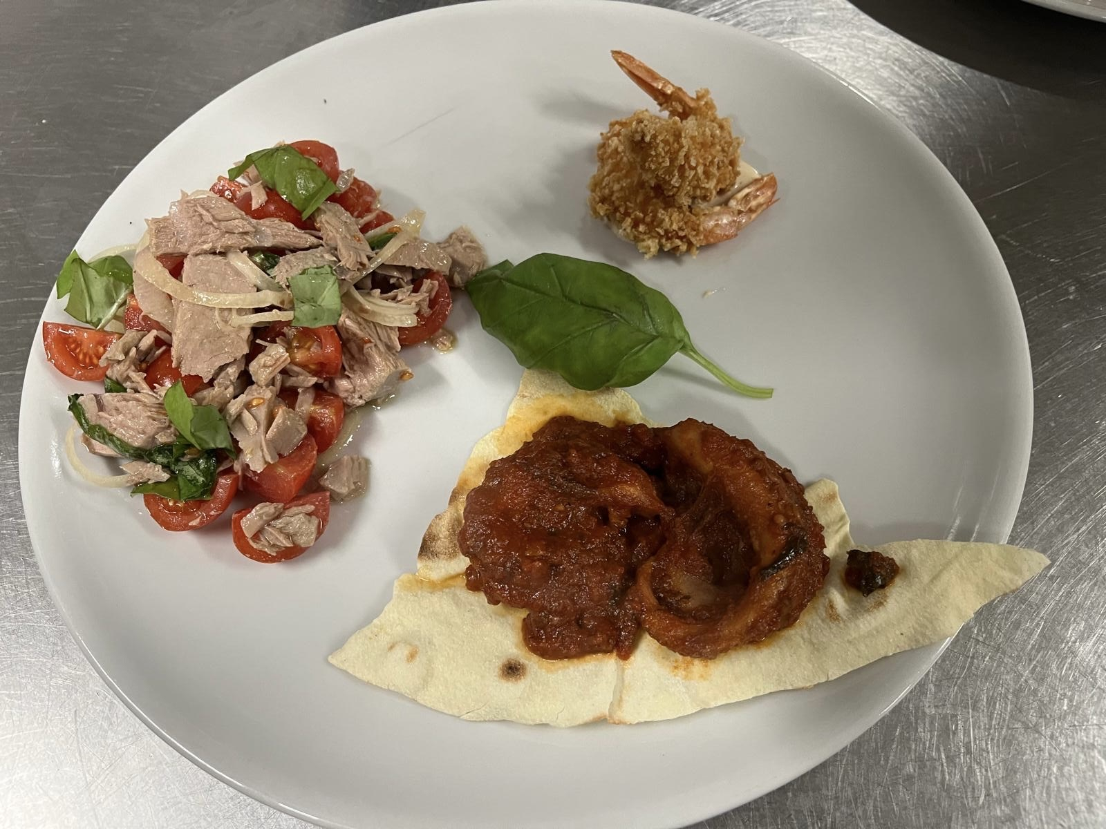 pomodoro, mozzarella, pesce spada, tonno affumicato, pomodoro fresco